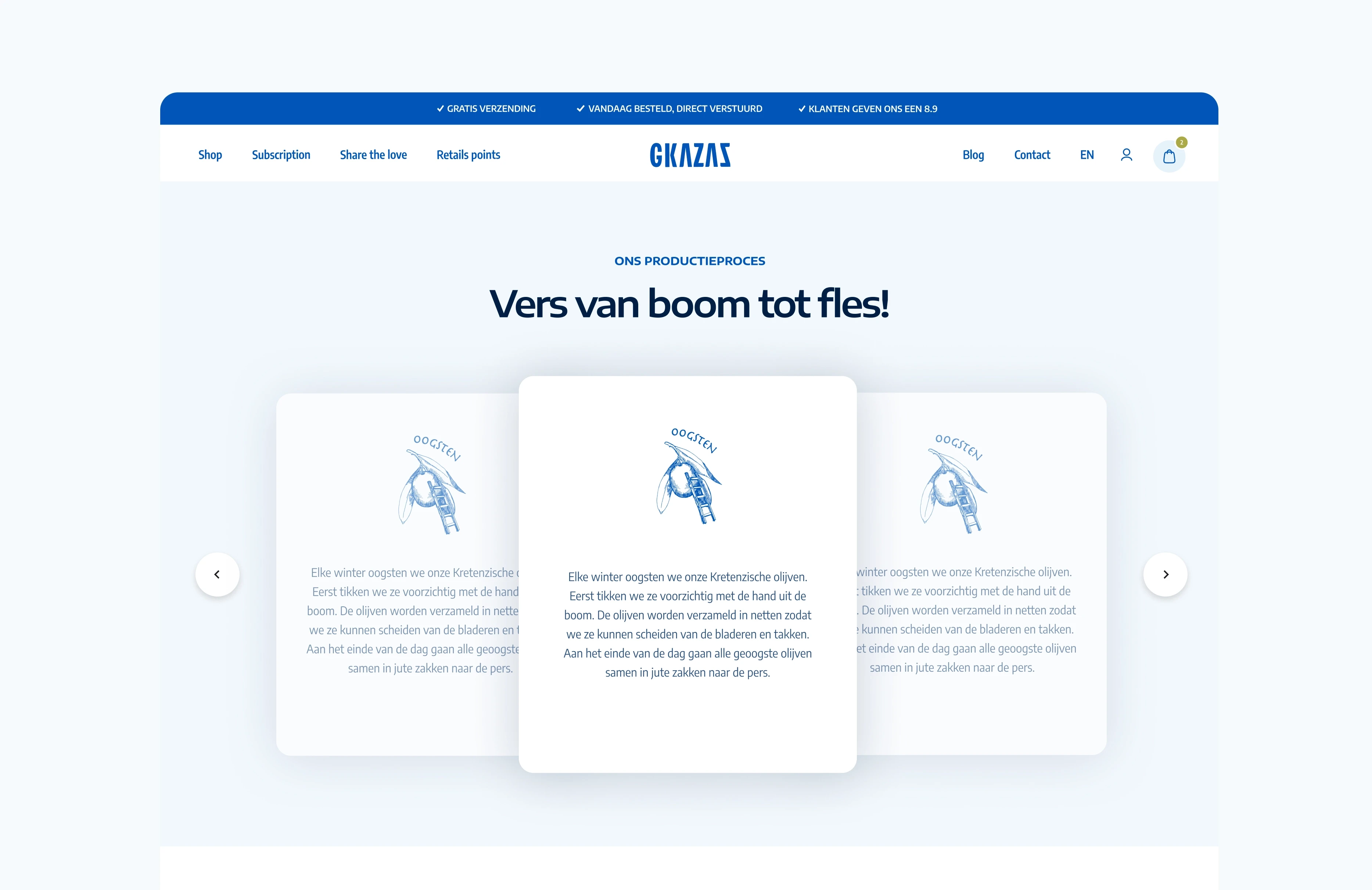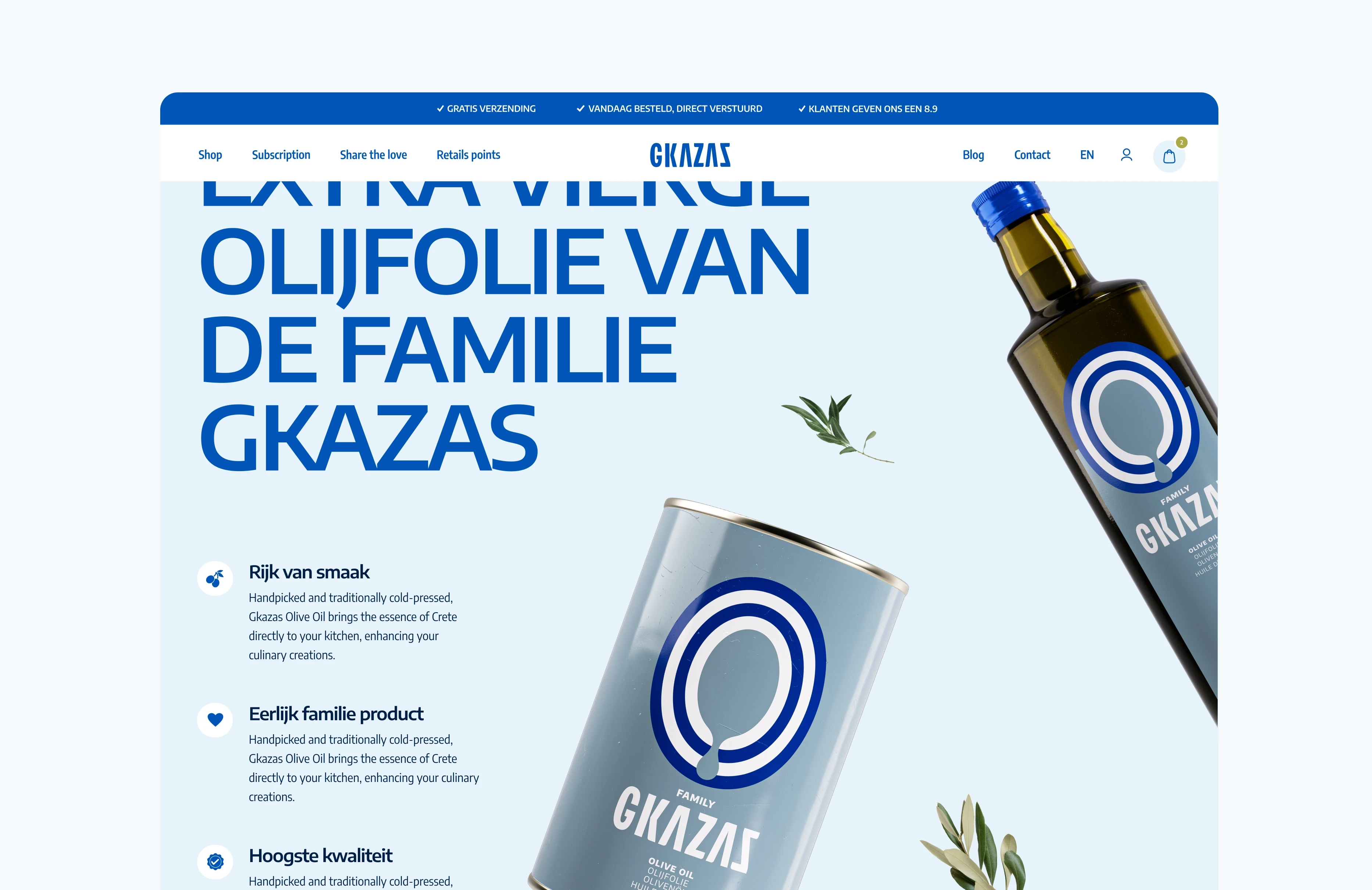 Gkazas is a family-run olive oil company committed to producing pure, organic olive oil straight from Crete. They value authenticity, tradition, and quality, bringing a taste of the Mediterranean to every bottle.I worked on a complete redesign of their website, creating a scalable design system that ensures consistency and a smooth user experience. The project was developed in close collaboration with developers, refining interactions and optimizing the design for seamless implementation. The new site is currently in development, soon bringing a fresh and modern look to Gkazas' digital presence.